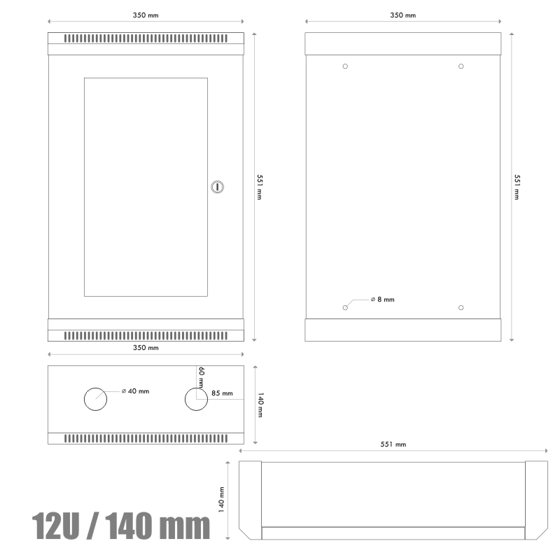 10" rack jednodílný 12U/140 DATACOM černý skl.dveře