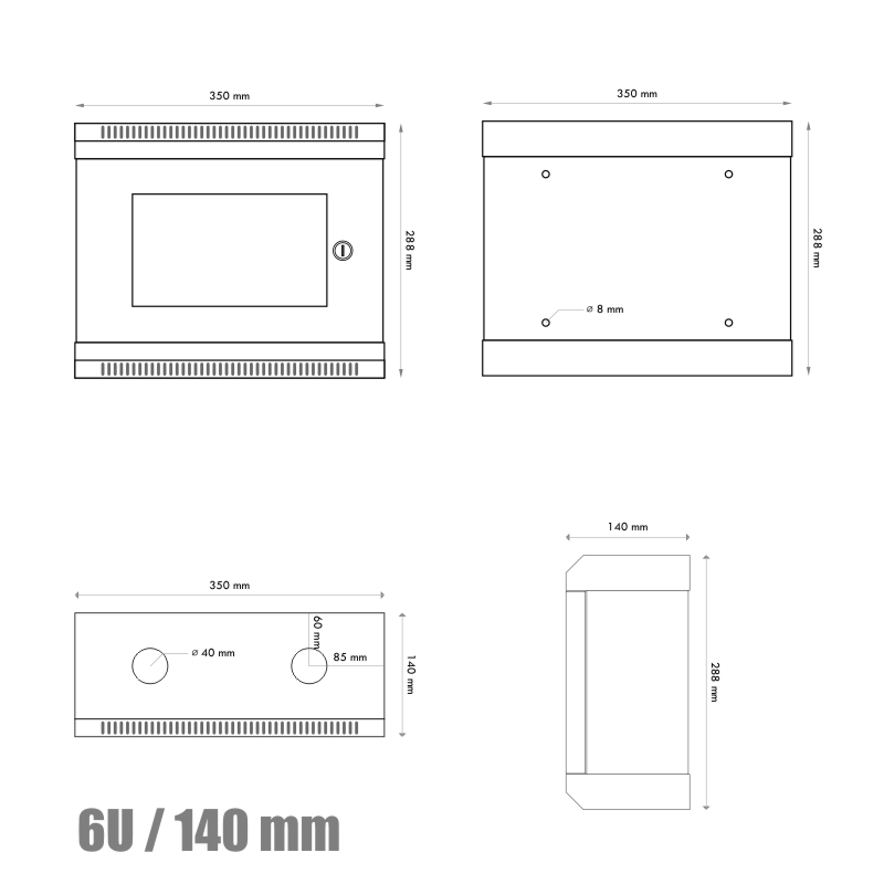10" rack jednodílný 6U/140 DATACOM Šedý Skl.dv.