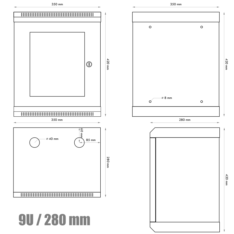 10" rack jednodílný 9U/280 DATACOM šedý Skl.dv.