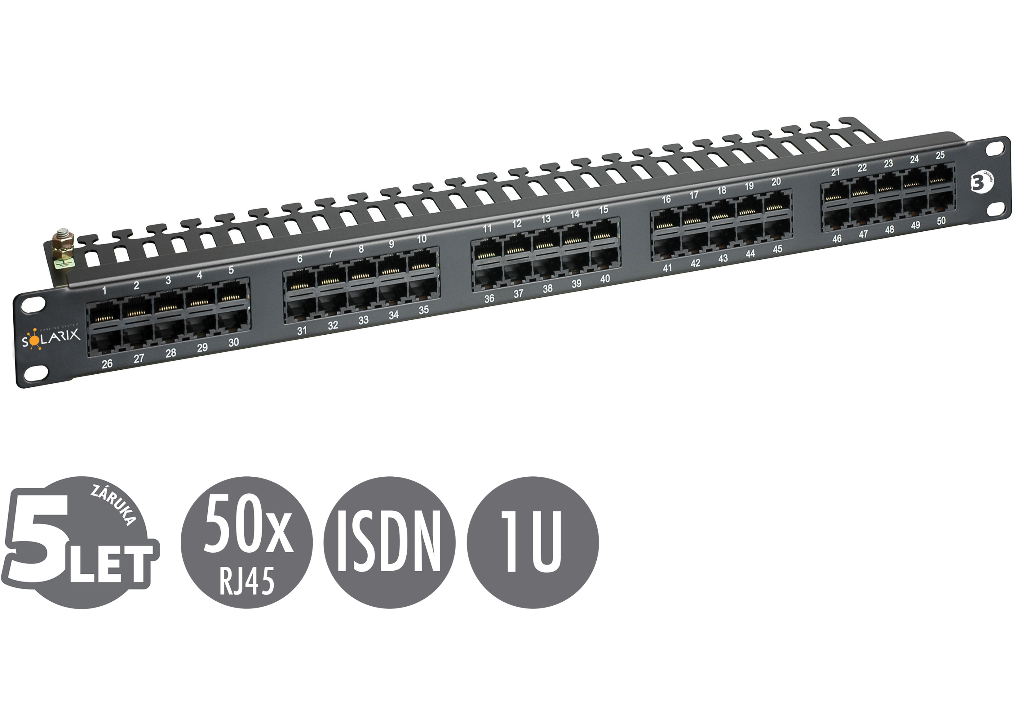 19" ISDN panel Solarix 50 x RJ45 černý 1U SX50-ISDN-BK