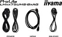Obsah balení: napájecí kabel (1,8m), HDMI (1,8m), RS-232c (1,8m), uživatelský manuál, instrukce bezpečnosti, samolepky pro montážní otvory, drátěné přezky, dálkové ovládání (včetně baterie)