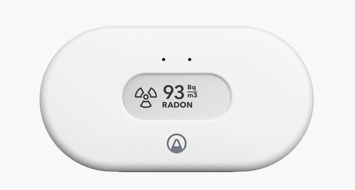 Airthings View Radon zahrnuje bezplatnou aplikaci (iOS / Android) a je napájen z baterie nebo přes USB kabel.