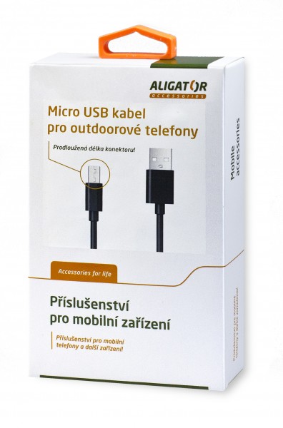 Aligator Datový kabel s prodlouženým microUSB konektorem, 2A, černý