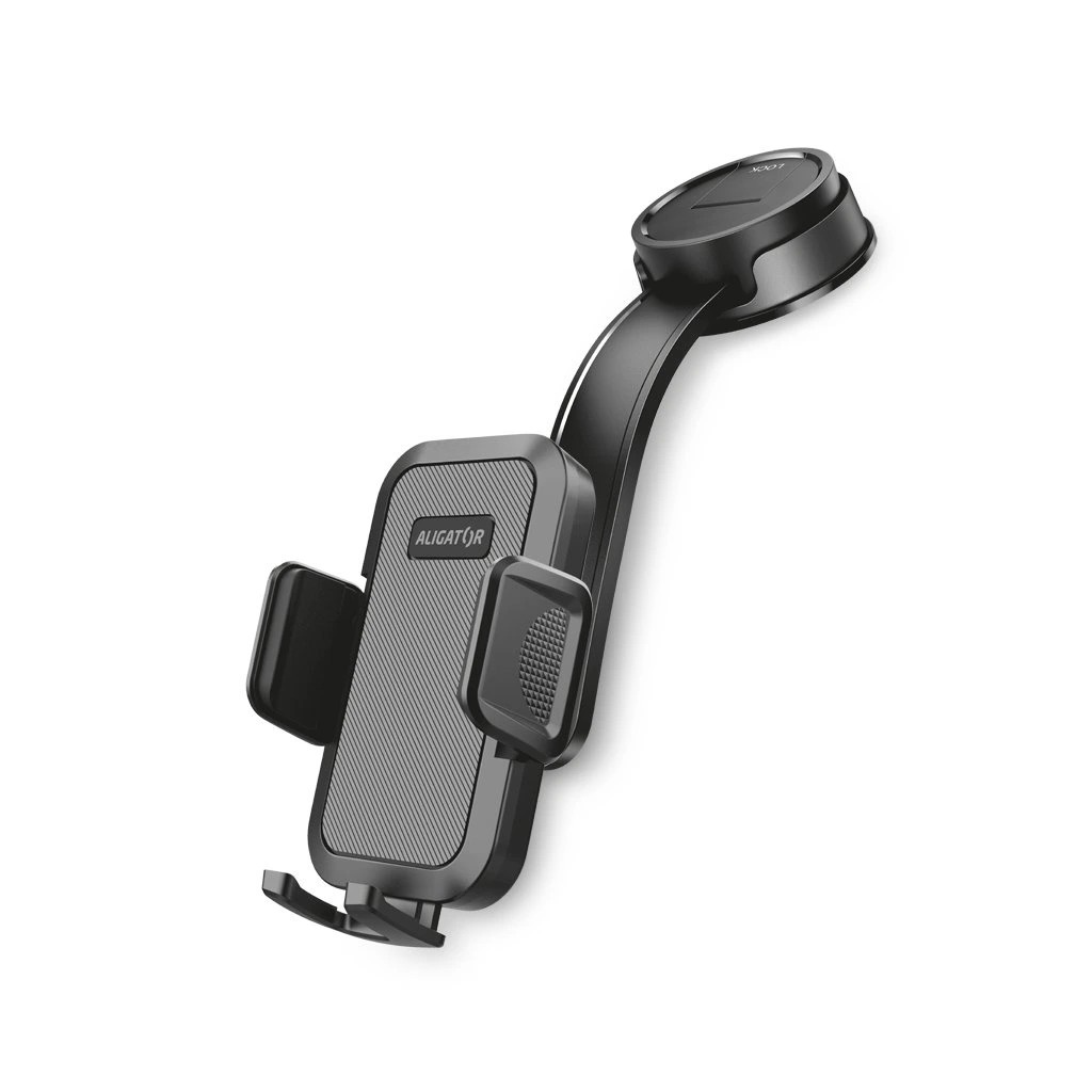 Držák do auta ALIGATOR s odolným ohebným ramenem, na palubní desku, univerzální Univerzální držák pro mobilní telefon s uchycením pomocí silné přísavky na palubní desku nebo čelní sklo. Díky ohebnému, nastavitelnému ramenu si telefon snadno nastavíte přesně do ideálního úhlu – ať už pro navigaci, hovory nebo přehrávání hudby. Pevná gelová přísavka zajistí bezpečné uchycení i při jízdě po nerovnostech. Přísavku lze snadno umístit na povrch palubní desky nebo skla, kde drží bez potřeby dalšího upevnění. Opětovné použití je jednoduché – stačí opláchnout a přichytit znovu. Dlouhé a nastavitelné rameno umožňuje nastavení do libovolného úhlu. Telefon si můžete přiblížit, natočit nebo naklonit tak, aby byl vždy perfektně čitelný a zároveň nebránil ve výhledu. Držák je vybaven bočními čelistmi – jejich roztažení zajišťuje tlačítko na zadní straně, zavření provedete jednoduše přitlačením k telefonu. Výsuvná spodní opěrka slouží k lepšímu vystředění zařízení a je doplněna otvorem pro pohodlné připojení nabíjecího kabelu.