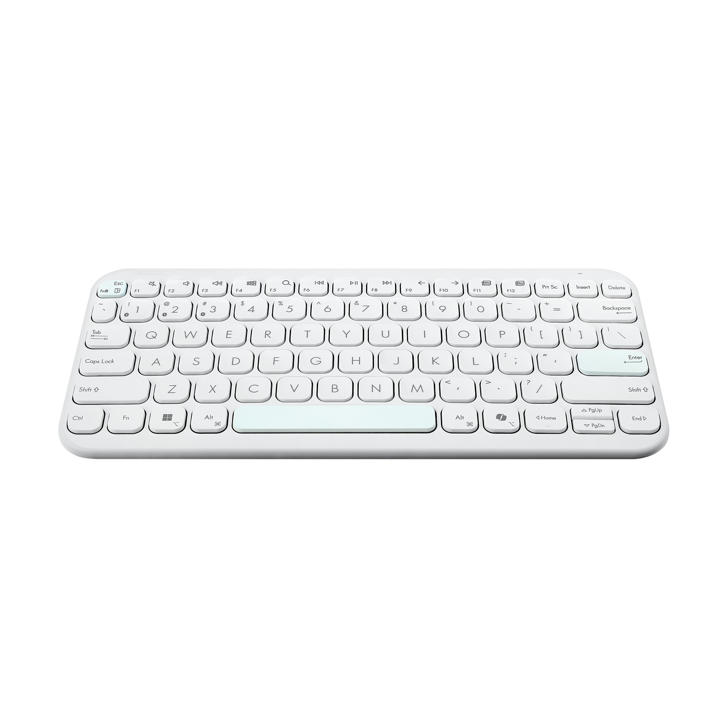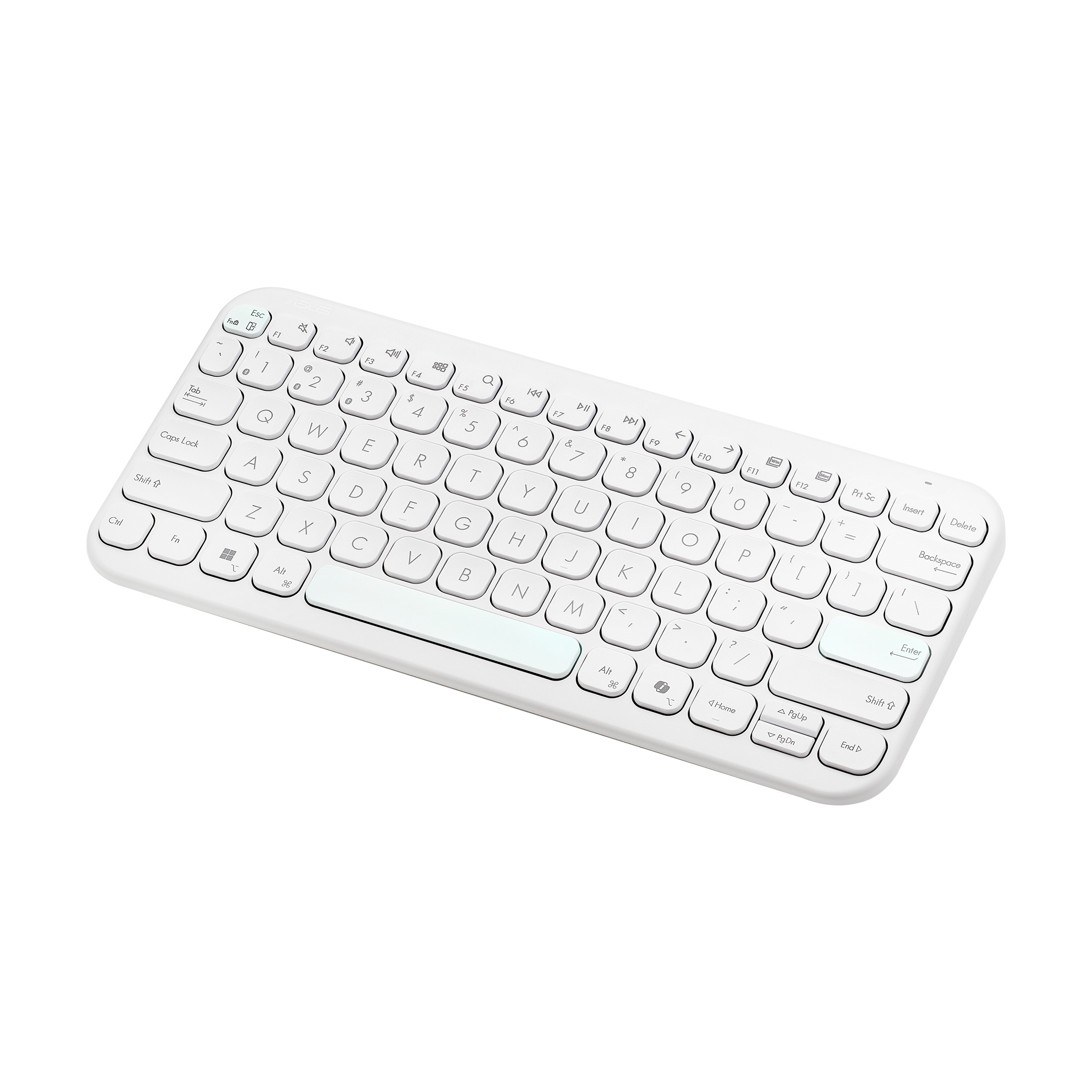 Klávesnice ASUS Marshmallow KW100 je kompaktní, ultratenká bezdrátová klávesnice s minimalistickým designem, která dobře zapadne do domácnosti nebo kanceláře. Klávesnice ASUS Marshmallow KW100 je kompatibilní se zařízeními s operačními systémy Windows, ChromeOS, MacOS, iOS a iPadOS a nabízí vynikající všestrannost, díky níž je ideální pro každodenní používání.
