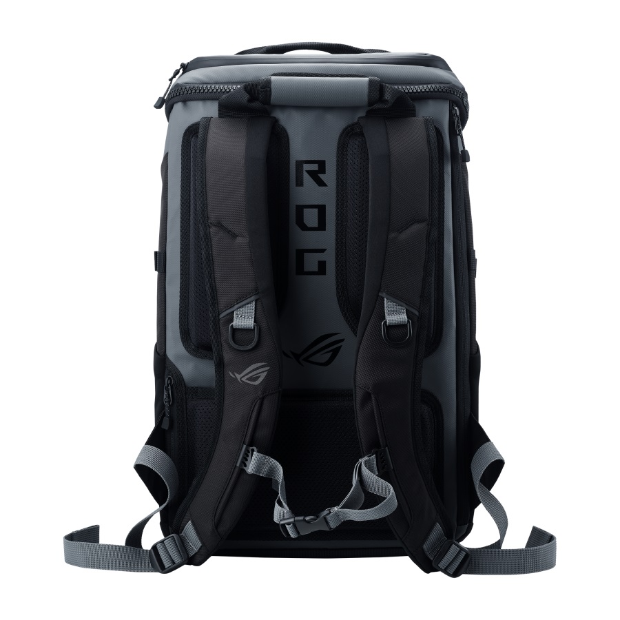 ASUS ROG Ranger BP2701 Gaming Backpack (Cybertext Edition) 22l batoh pro hráče * odolná konstrukce * vodoodpudivý * reflexní kybertextové nápisy * až pro 17" notebook * kapsy pro klávesnici, myš, náhlavní soupravu, nabíječku a další vybavení * voděodolná kapsa v horní části batohu poskytuje rychlý přístup k drobnostem, jako je powerbanka nebo sluchátka * nastavitelné polstrované ramenní popruhy z Lycry * hrudní popruh * popruh na zavazadla * boční síťovaná kapsa Materiál: Polyester, PU Barva: černá Velikost přihrádky pro ntb: 415*293*26mm Rozměry: 490*315*155mm Hmotnost: 980g Záruka: 2 roky