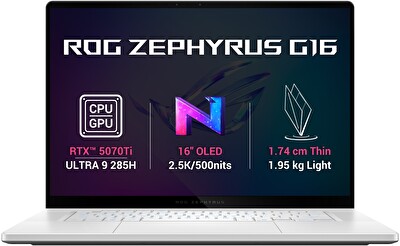 ASUS ROG Zephyrus G16/GU605CR-NEBULA169X/U9-285H/16"/2560x1600/32GB/2TB/RTX 5070Ti/W11P/White/2R