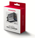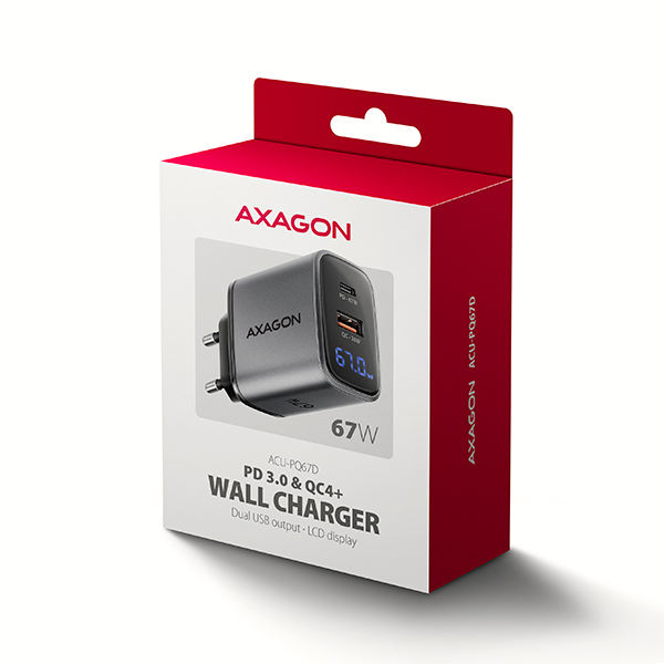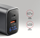 AXAGON ACU-PQ67D, GaN nabíječka do sítě 67W, výstup USB-A + USB-C, PD3.0/PPS/QC4+/SFC2.0/Apple, LCD