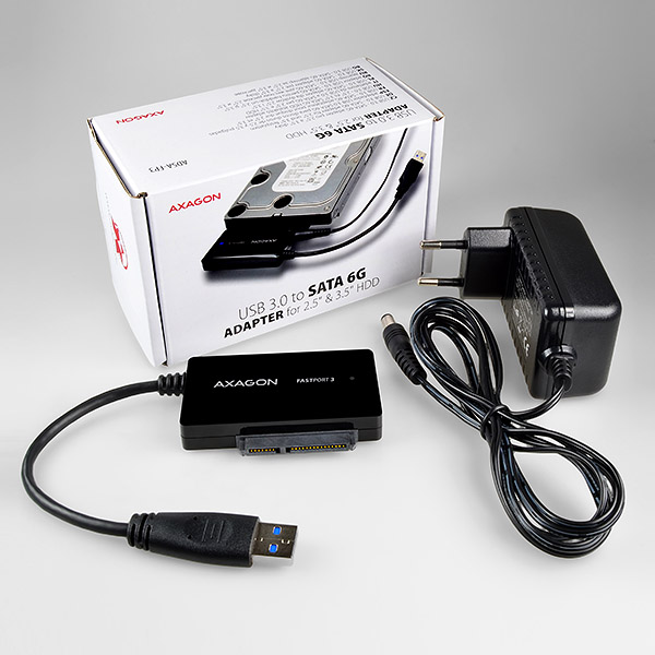 Univerzální all-in-one adaptér AXAGON ADSA-FP3 FASTport3 s USB 3.0 a SATA 6G rozhraním určený pro snadné připojení libovolného SATA disku nebo mechaniky. Podporuje všechny druhy 2.5" HDD/SSD, 3.5" pevných disků i 5.25" optické mechaniky CD, DVD nebo Blu-ray. Poradí si se všemi SATA, SATA II i SATA III disky bez omezení maximální kapacity. Aktuální SATA III/6G rozhraní dovolí i využití rychlosti moderních SSD disků. Čtení S.M.A.R.T. informací monitorujících kondici připojených disků. Podpora uspávání připojených disků i adaptéru. Instalaci zvládne i úplný laik - disk se připojí k adaptéru a adaptér do USB portu počítače, zbytek proběhne automaticky. Adaptér s 2.5" HDD/SSD stačí napájet po USB sběrnici, odpadá manipulace se síťovým napáječem. Vlastnosti: • Kompatibilní s USB 3.0, zpětně kompatibilní s USB 2.0. • Podpora přenosových rychlostí 12 / 480 / 5000 Mbit/s (full / high / super speed). • Podpora 2.5" SATA III/II/I disků bez omezení maximální kapacity. • Vyhovuje Serial ATA 3.1 specifikaci (SATA/600), přenosové rychlosti až 6 Gb/s. • Vyhovuje Serial ATA 2.0 specifikaci (SATA/300), přenosové rychlosti až 3 Gb/s (300 MB/s). • Vyhovuje Serial ATA 1.0 specifikaci (SATA/150), přenosové rychlosti až 1.5 Gb/s (150 MB/s). • Celková propustnost / přenosová rychlost adaptéru je dána použitým USB 3.0 rozhraním (teor. 5 Gbit/s). • Podpora bootování z SSD/HDD připojeného přes USB adaptér. • Podpora HDD autostop - uspávání připojených disků při nečinnosti. • Možnost připojení zařízení za chodu díky podpoře Hot Plug. • Plná podpora plug and play. • Připojení přes přímý USB 3.0 type A male konektor na 12 cm dlouhém kabelu napevno spojeném s adaptérem. • Decentně svítící modrá LED dioda indikující připojení USB napájení (trvalým svitem) a přenos dat (blikáním). • Napájení po USB 3.0 sběrnici až 900mA z jednoho USB portu zcela dostačuje pro 2.5" HDD/SSD. • Pro napájení adaptéru s 3.5" diskem nebo optickou mechanikou je přibalen kompaktní externí AC/DC adapter 12V - 2A (24W) s přívodním kabelem délky cca. 150 cm. • Rozměry USB adaptéru 71 x 46 x 14.3 mm, hmotnost adaptéru pouze 39 g vč. USB kabelu. Podporované operační systémy: • MS Windows XP / Vista / 7 / 8 / 10 a novější, Windows Server 2003 / 2008 / 2012 a novější (podporovány všechny 32- i 64-bitové verze OS Windows), Mac OS X 10.x a vyšší, Linux s jádrem 2.6.x a vyšším. • Pozn.: Ovladače jsou součástí podporovaných operačních systémů a nainstalují se zcela automaticky. Žádné jiné ovladače není třeba instalovat a nejsou ani k dispozici. Balení v kartonové krabičce obsahuje • USB 3.0 - SATA 6G adaptér vč. USB 3.0 kabelu délky 12 cm a napájecí adapter 100-240V / 12V-2A.