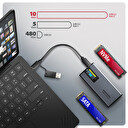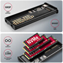 Externí AXAGON EEM2-SD2 DISPLAY box s USB 10Gbps rozhraním je určený pro M.2 NVMe nebo SATA SSD disky. Spolehlivé připojení k počítači umožňuje oboustranný USB-C konektor na boxu. V balení naleznete nejen kabel USB-C -> USB-C pro připojení boxu k počítači, ale také USB-C -> USB-A redukci. Můžete tak box připojit k jakémukoliv volnému USB portu na notebooku.
