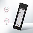 Výhodou je uchycení rovnou pro tři různé délky SSD disku - 42, 60 a 80 mm. M.2 disků mohou být jednostranné nebo oboustranné. Box nemá omezení kapacity vloženého SSD disku.