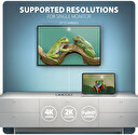 HDMI výstup poskytuje kvalitní obraz až do rozlišení 4K/60Hz Ultra HD a podporuje přenos vícekanálového zvuku. Podporovány jsou také vysoké frekvence v oblíbených hráčských rozlišeních 2K/120Hz nebo FullHD/240Hz. Díky podpoře HDR (vysoký dynamický rozsah) si můžete bez omezení vychutnat výrazně rozšířený rozsah barev a kontrastů. Pro správné fungování video výstupu je nutné, aby notebook měl USB-C port s podporou DisplayPort Alternate Mode (DP Alt Mode) nebo port Thunderbolt 3, 4 a výše.