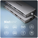 AXAGON HMC-8HLSA, USB 5Gbps hub, 3x USB-A, HDMI 4k/60Hz, RJ-45 GLAN, SD/microSD, audio, PD 100W