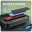 NVME nebo SATA M.2 SSD disk připojíte díky vestavěnému slotu na vrchní straně hubu. Multiport hub se tímto stává i externím diskem. Karty M.2 mohou být jednostranné nebo oboustranné o rozměrech 22x42, 22x60 a 22x80 mm. Externí M.2 úložiště nemá omezení kapacity SSD disků, podporuje funkce TRIM a UASP a umožňuje čtení S.M.A.R.T. informací monitorujících stav disku.