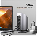 Hliníkové tělo nejen skvěle vypadá, ale zajistí i mechanickou odolnost a pasivní chlazení. Díky gumové podložce na podstavci zůstane stanice pevně na svém místě. USB-C hub je ideálním doplňkem pro notebooky bez USB-A konektorů a video výstupu. Díky funkcím Plug & Play a Hot Plug je samotné zapojení hubu velmi jednoduché bez složité instalace, a také lze jednoduše připojovat a odpojovat periferie za běhu počítače.