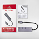 AXAGON HUE-MSA, 4x USB 3.2 Gen 1 SWITCH hub, kovový, micro USB nap. konektor, kabel USB-A 20cm