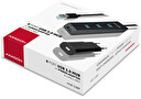 Lehký malý rozbočovač s elegantním matným plastovým tělem připojí snadno a rychle k počítači až čtyři USB zařízení současně.