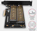 Adaptér podporuje použití SATA i NVMe (PCI-Express) M.2 SSD disků, jednostranných i oboustranných. Redukce nemá omezení kapacity SSD disků a lze použít M.2 karty všech rozměrů až do délky 110 mm. Samozřejmostí je fungování obou disků zároveň.