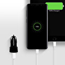 Car charger indikuje správné vstupní napájení modrou LED zabudovanou uvnitř, neoslňuje a nerozptyluje tak za jízdy.