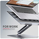 Podstavec je vyroben z robustních hliníkových odlitků garantujících dlouhou životnost a spolehlivost. Díky protiskluzové úpravě se nemusíte obávat nežádoucích pohybů – vaše zařízení zůstane pevně na svém místě, a to bez poškození povrchu notebooku či podložky. Tyto pečlivě navržené vlastnosti zaručují perfektní stabilitu pro váš notebook, tablet nebo dokonce oblíbenou knihu, což vám poskytne klid a pohodlí při každodenním používání.