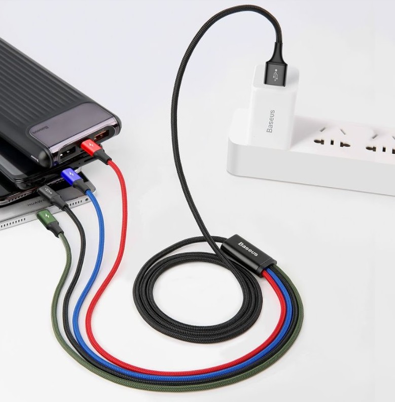 Baseus datový kabel 4v1 microUSB+USB-C+2xLightning 1,2m 3,5A černý