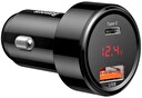 Baseus nabíječka do auta Magic USB-C PD, USB-A 45W s displejem černá