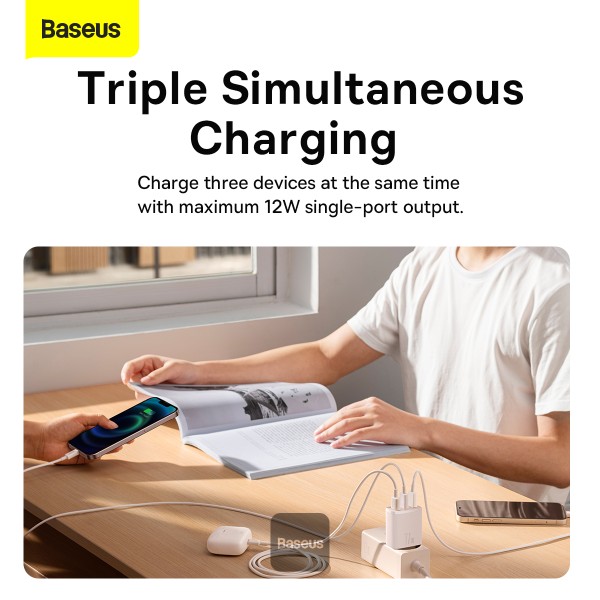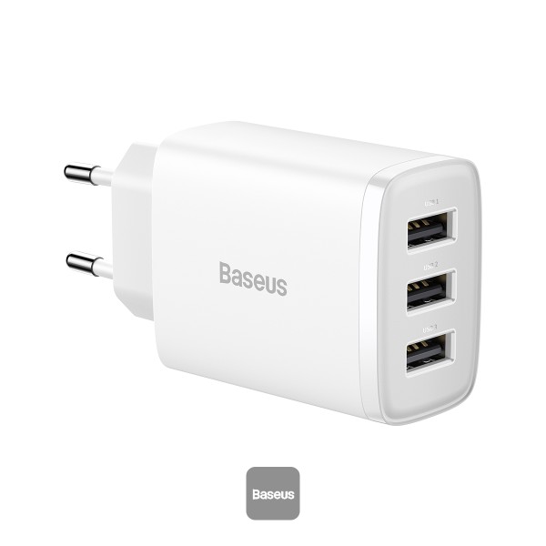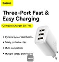 Baseus Compact Charger 3U 17W EU White 3xUSB