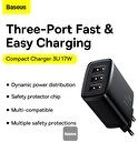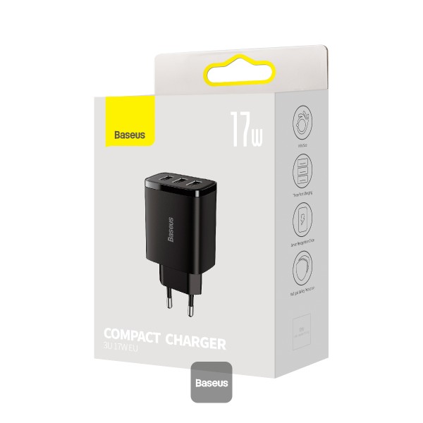 Baseus nabíječka do sítě Compact 3xUSB 17W černá