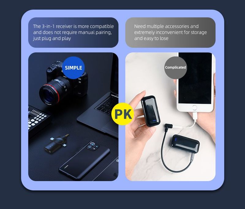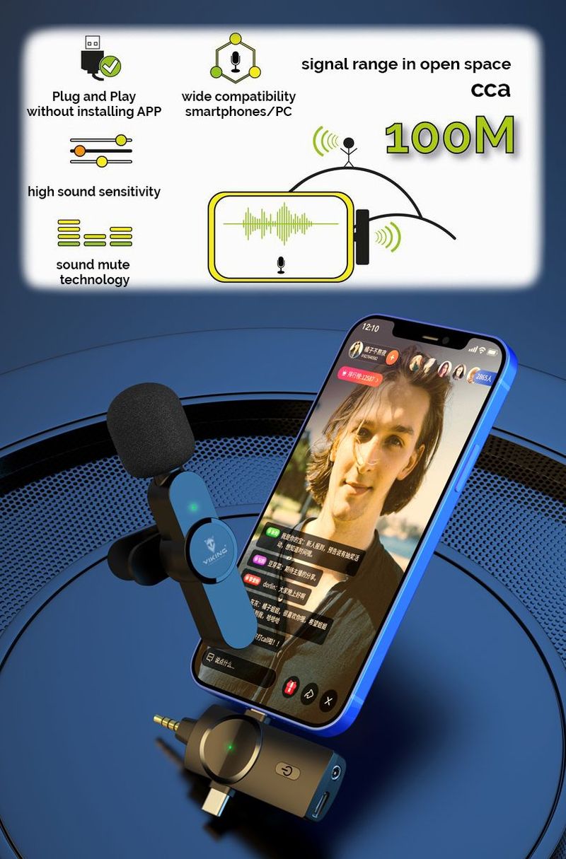 Malý, výkonný bezdrátový mikrofon VIKING M360/3in1 je vhodný pro pořízen audio/video záznamu ve vysoké kvalitě. Dlouhá výdrž baterie, vysoká citlivost mikrofonu a žádné zbytečné kabely, to jsou hlavní přednosti, které vám umožní snadné a pohodlné pořízení zvukového záznamu.