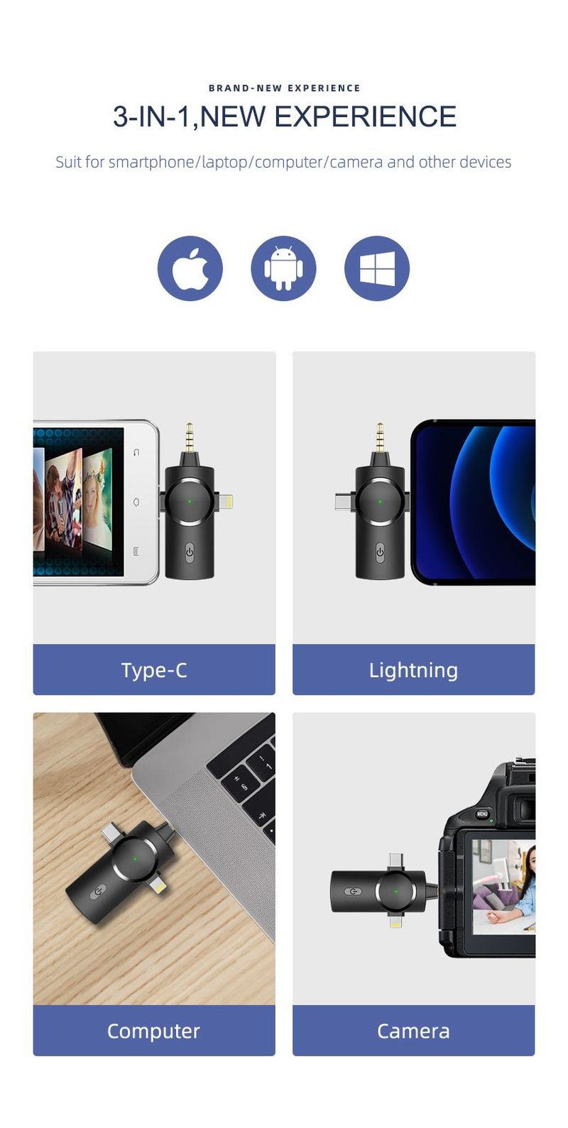 Velkou výhodou mikrofonu VIKING M360/3in1 je baterie s výdrží až 7 hodin, která Vám zajistí dostatečný čas na pořízení kvalitního audio/video záznamu. Díky podpoře operačního sytému Android a iOS, Vám bude tento mikrofon VIKING M360/3in1 spolehlivě sloužit.