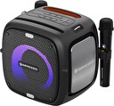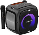 Obsah balení : reproduktor, 2x bezdrátový mikrofon, kabel USB A - USB C, kabel AUX jack 3,5mm stereo, popruh na rameno, 4x AA baterie, manuál
