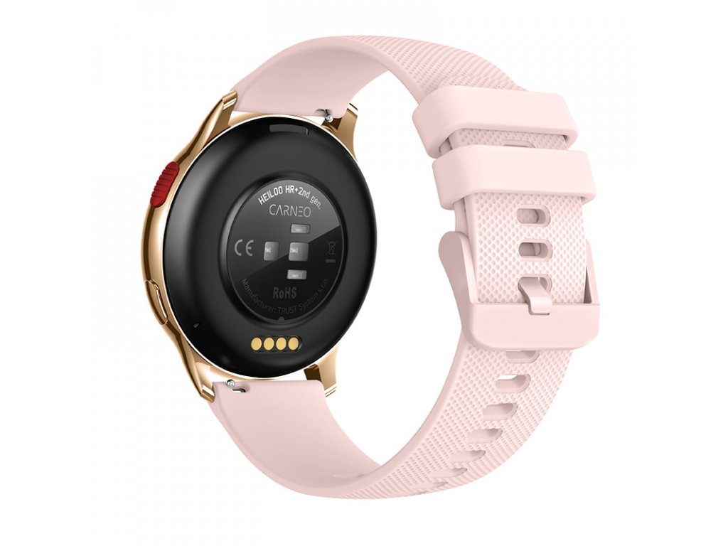 Moderní fitness smart hodinky Carneo Heiloo HR+ druhé generace v elegantním zlatém provedení disponují kulatým Super HD AMOLED barevným displejem. Umožňují měření srdečního tepu, stresu, BMI, ušlé vzdálenosti, monitorování spálených kalorií či kvality spánku. Jejich součástí je 220mAh baterie s výdrží 2 až 5 dní. Podle certifikace IP67 jsou odolné vůči vodě a prachu. Jsou kompatibilní s operačním systémem iOS a Android. Hodinky mají na dotek příjemný silikonový řemínek, který lze vyměnit za řemínek v jiné barvě či kožený a tím pádem změnit hodinkám sportovní vzhled za manažerský. Vkusný, jednoduchý a luxusní design se snadno kombinuje k obleku či volnočasovému outfitu. Hodinky i aplikace jsou kompletně v češtině, takže si budete jistě spolu dobře rozumět.