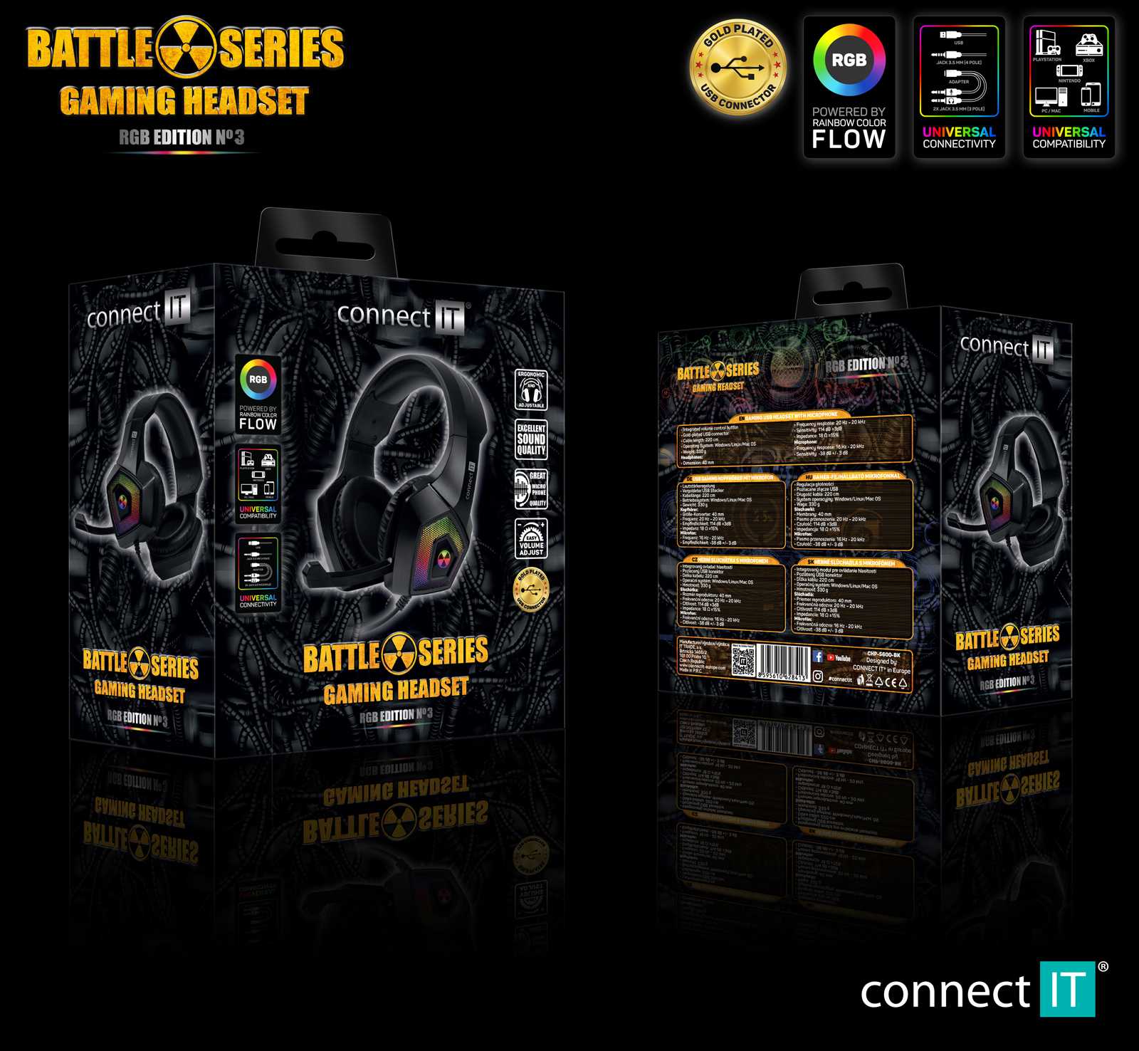 Profesionální gamingová sluchátka se sklápěcím mikrofonem BATTLE RGB SERIES Edition 3 s RGB podsvícením pro hráče počítačových her