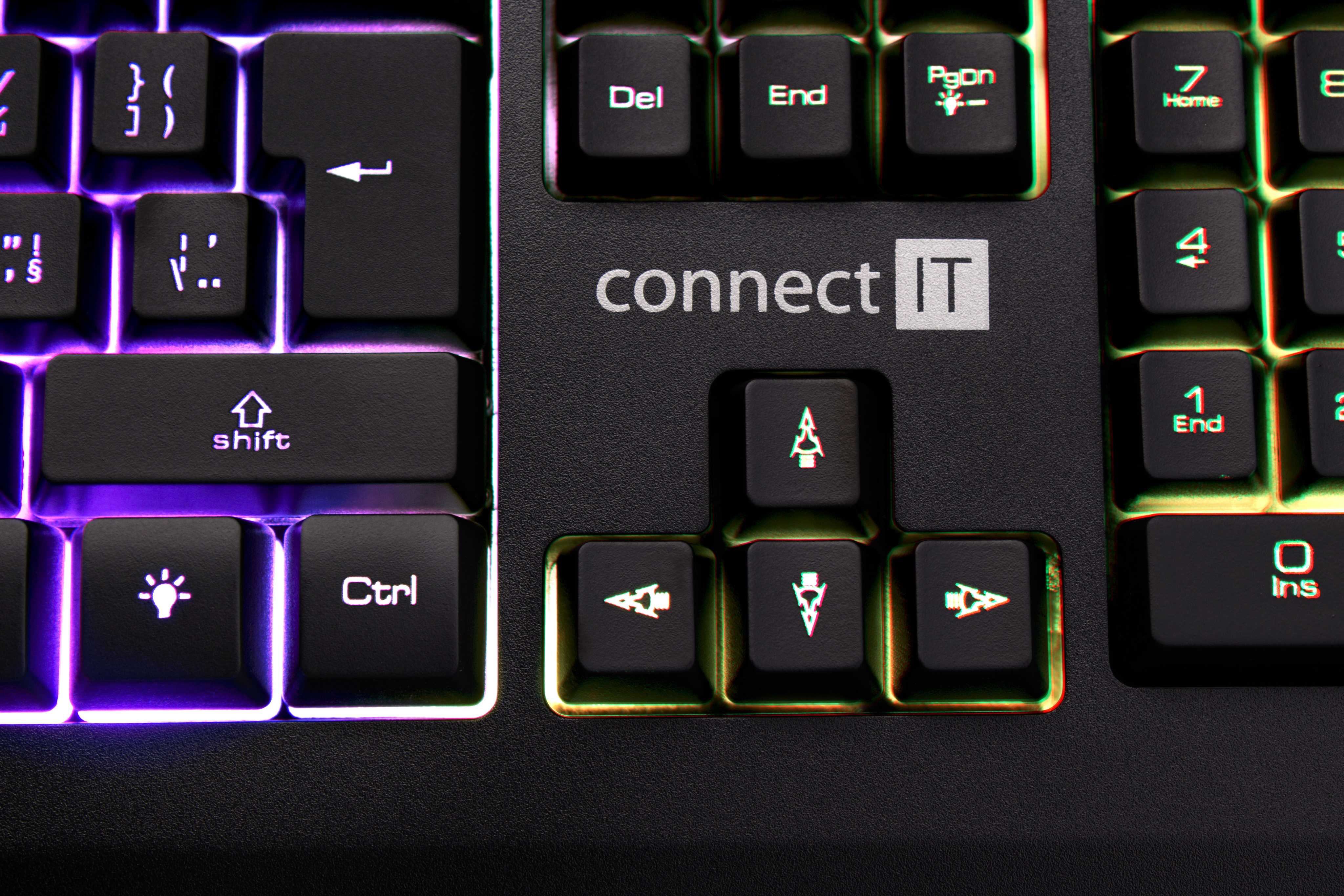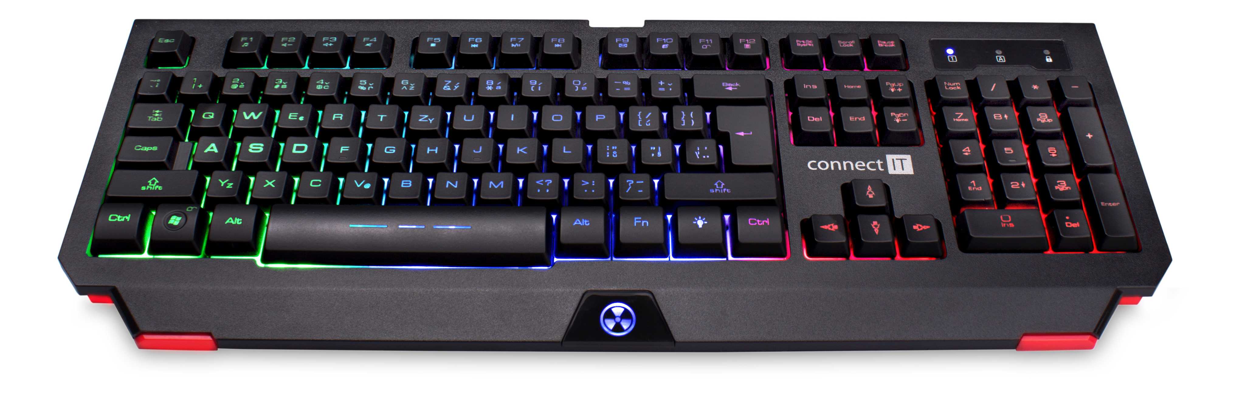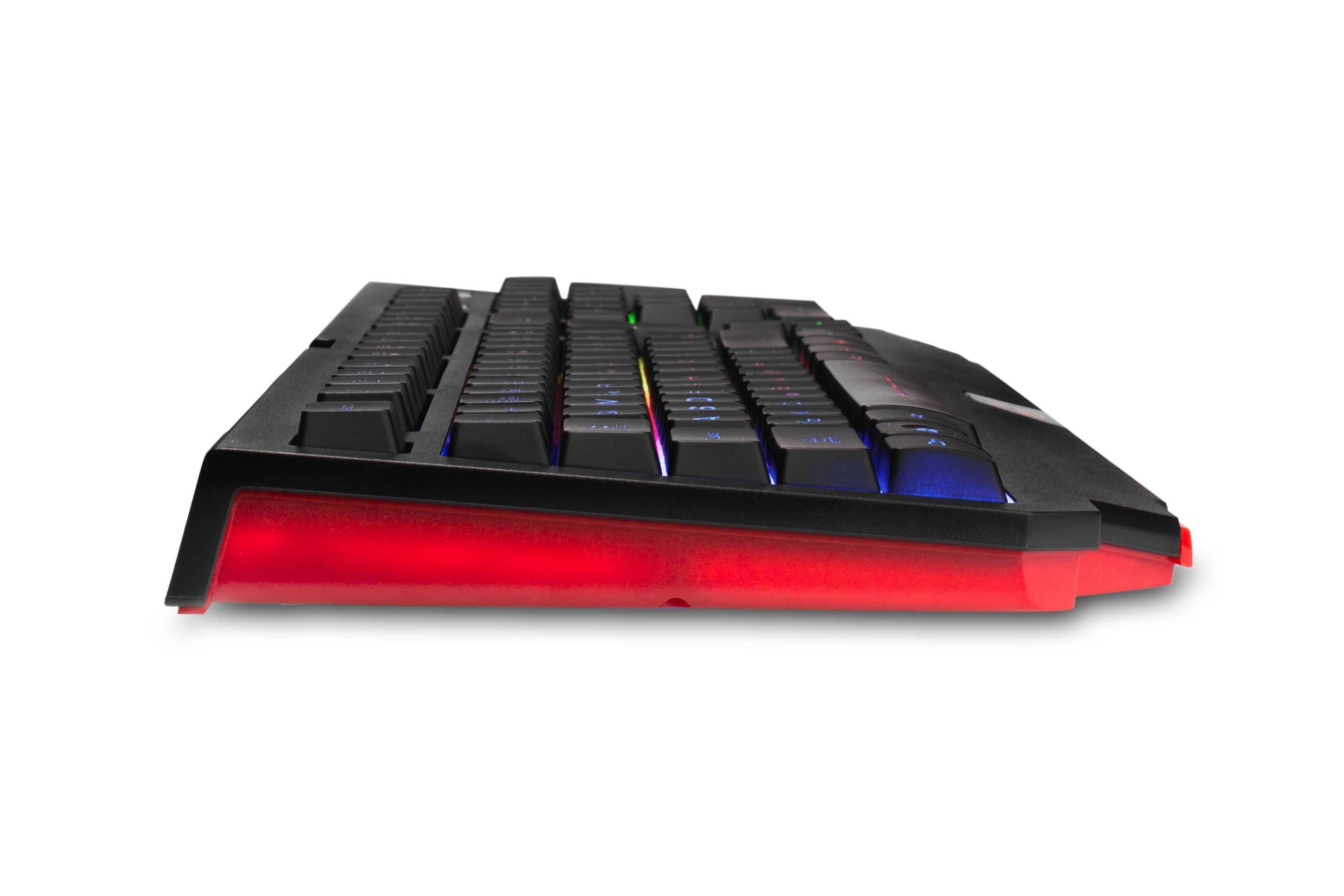 Klávesnice nabízí 12 multimediálních tlačítek, které vám usnadní práci se zvukem i videem a 19 Anti-ghost kláves. Během hraní se tlačítko Windows zablokuje, abyste si mohli užít nerušený herní zážitek. Klávesnici si můžete výškově jednoduše přizpůsobit pomocí nastavitelných nožiček. Konektivitu zajišťuje USB kabel dlouhý 180 cm, který jen stačí připojit do USB portu zařízení a ovladač se už sám nainstaluje. Klávesnice nabízí i barevné LED podsvícení ve více volitelných barvách.