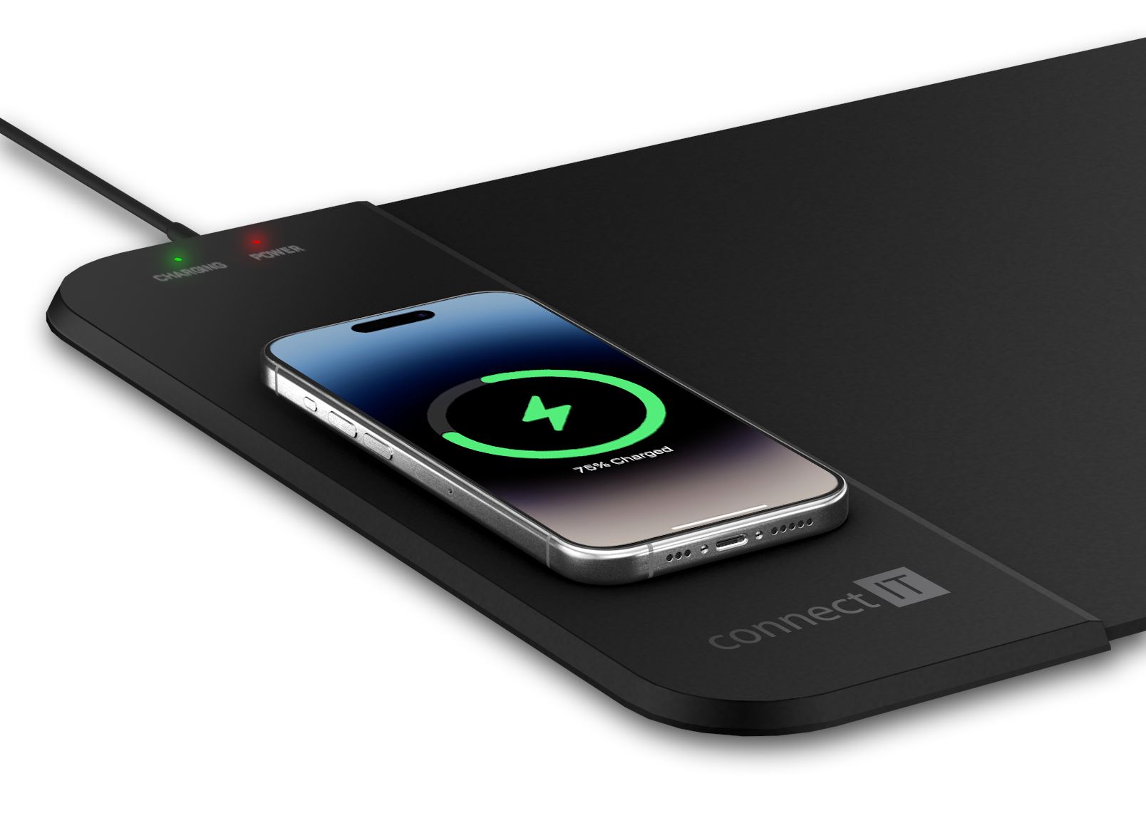 Na kvalitní a stylové podložce CONNECT IT CHARGE se projeví pozitivní vlastnosti vaší myši. Moderní materiál, ze kterého je podložka vyrobena, poskytuje myši dobře snímatelný podklad i pro nejjemnější laserové snímání. Dvouvrstvý materiál kombinující protiskluznost na spodní straně a ideální vlastnosti pro myši na vrchní straně se výraznou měrou zaslouží o ideální poměr mezi kontrolou nad myší a skluzem. Bezdrátové nabíjení umožňuje nabíjet zařízení pouhým položením na nabíječku, tedy bez nutnosti připojování napájecího kabelu do telefonu. Funguje na principu elektromagnetické indukce mezi dvěma cívkami, přičemž jedna cívka se nachází v telefonu samotném a druhá v bezdrátové nabíječce. Napájení podložky zajistí USB-C kabel, který je součástí balení.