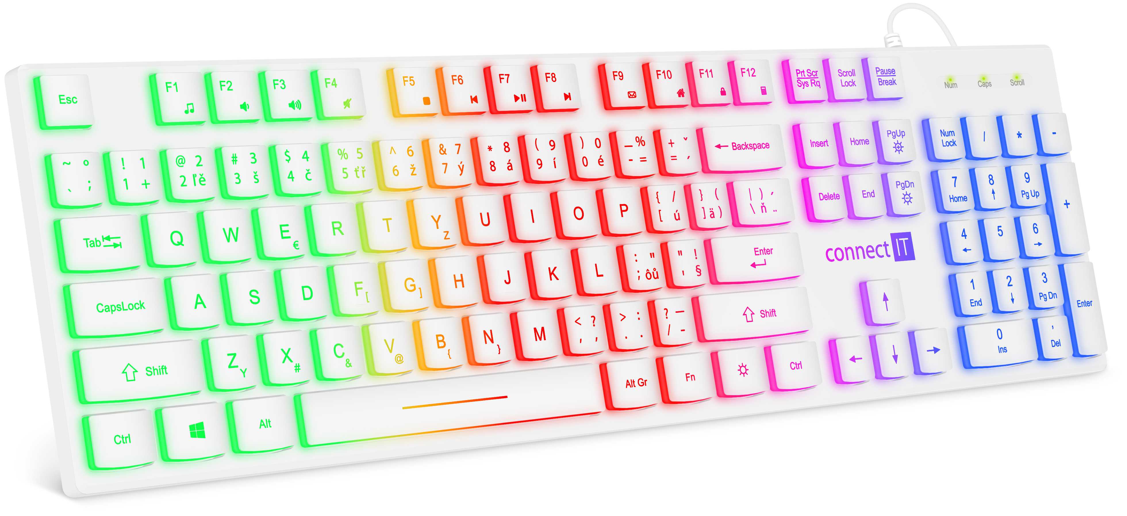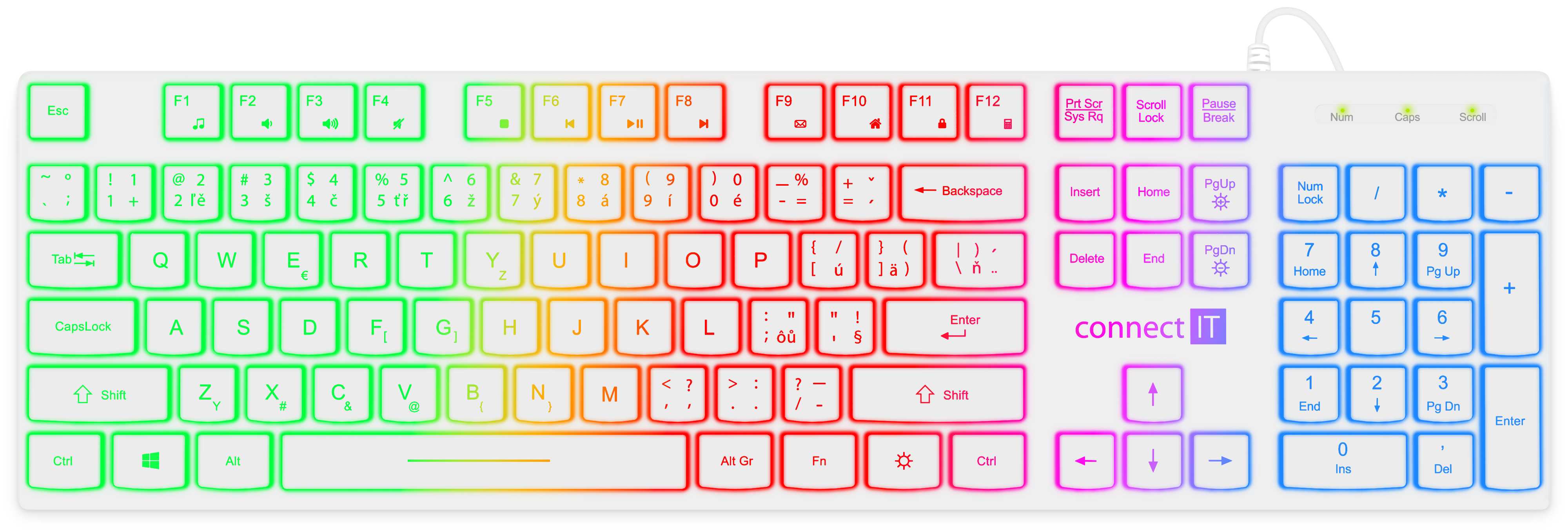 Rainbow (RNBW) barevné podsvícení kláves (zelená, žlutá, červena, fialová, modrá)