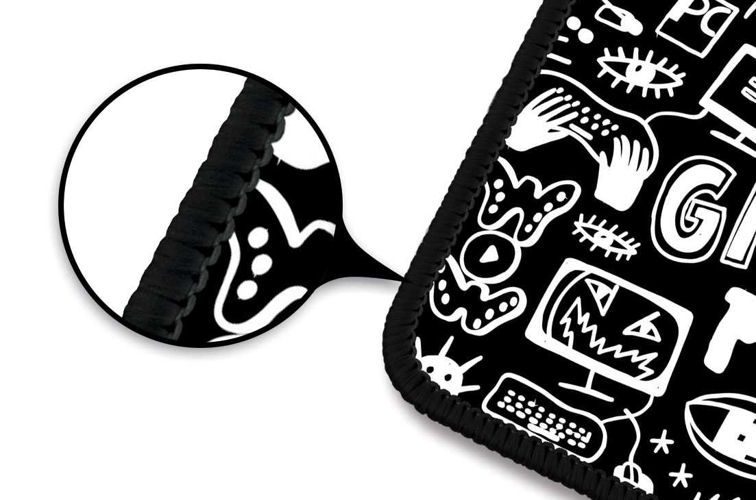 Profesionální podložka herní řady DOODLE určená i pro amatérské využití. Podložka má měkký, příjemný povrch s nadčasovým Doodle potiskem. Při velikosti herní plochy 320 × 245 mm vám nikdy nedojde prostor k pohybu. Velkou výhodou je pogumovaná protiskluzová spodní strana a antistatický povrch, po kterém bez problému bude jezdit každá myš. Materiál byl navržen tak, aby odpuzoval vodu a nečistoty. Podložka má obšité okraje speciální kvalitní nití.