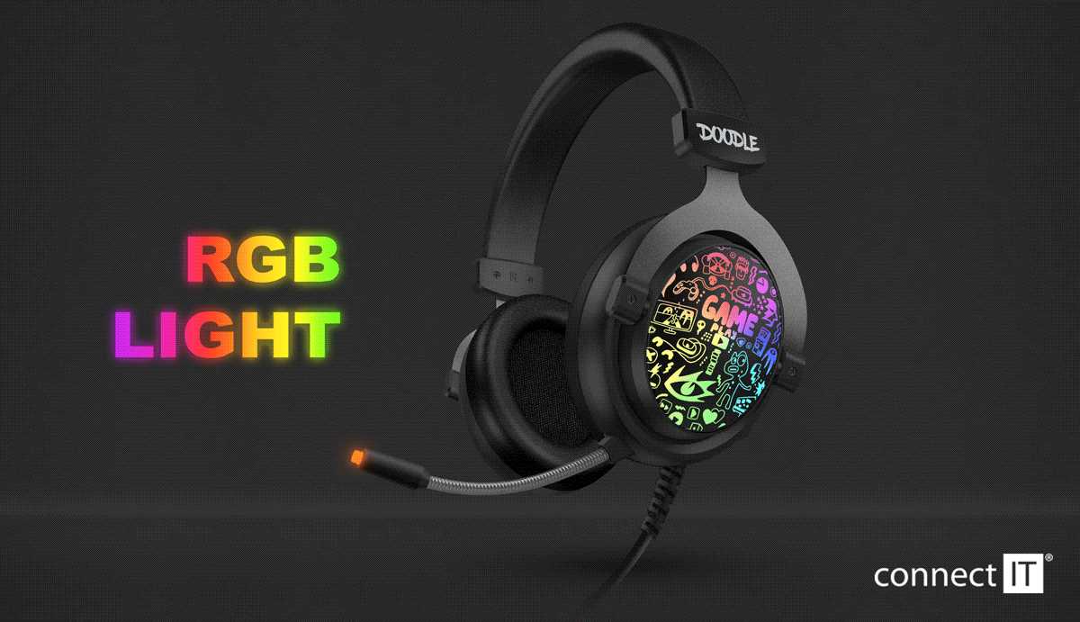 Profesionální gamingová sluchátka DOODLE RGB s flexibilním mikrofonem a RGB podsvícením pro hráče počítačových her.