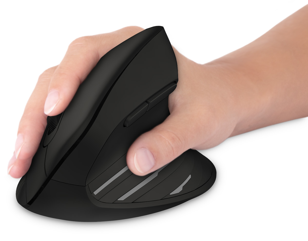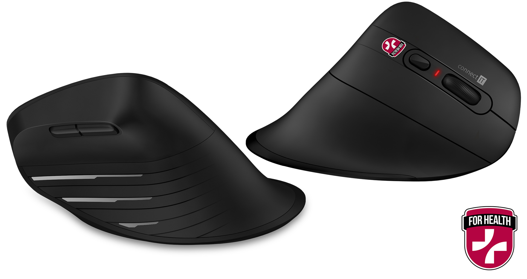 Vertikální ergonomická optická bezdrátová myš FOR HEALTH Verti TriMode BLACK určená speciálně jako prevence proti syndromu karpálního tunelu. Nabízí možnost připojení na tři počítače díky technologii TriMode (2x Bluetooth 4.2 + 2.4 GHz wireless). DPI rozlišení 2400 DPI. 6 tlačítek včetně precizního otočného kolečka. Dvě mikrotužkové baterie součástí balení.