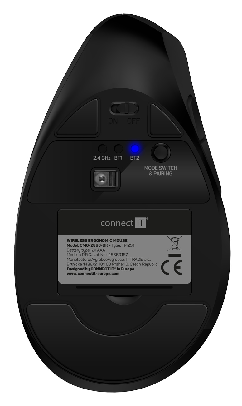 ON/OFF přepínač ve spodní části myši pro úplné vypnutí
