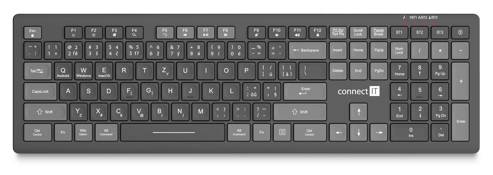 Scissors nízko profilová tichá klávesnice se čtyřmi bezdrátovými profily podporujícími standardy BT 5.0, 3.0 a Wirelless 2,4 GHz je ideální pro domácí použití i pro vysoko zátěžové profesionální použití v kancelářích a firmách.