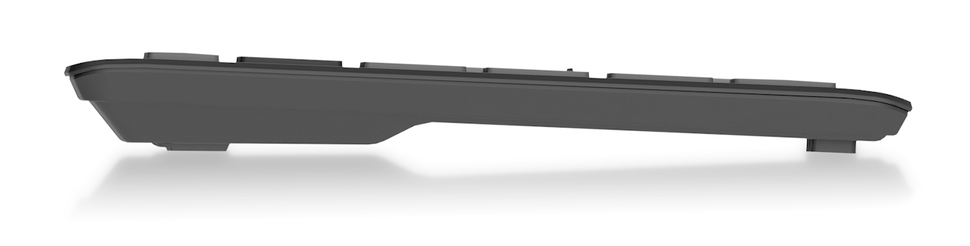 Klávesnice kromě klasických funkcí disponuje zabudovanou 350 mAh baterií s výdrží až 100 hodin a 13 multimediálními klávesami, které se obzvláště hodí do kancelářského prostředí. Unikátní technologie Quatro SmartSwitch umožňuje používat klávesnice až na čtyřech zařízeních, které podporují BT 5.0 nebo disponují USB-A vstupem. Tato funkce je ideální pro profesionální i domácí použití všude tam, kde je potřeba pracovat s jednou klávesnicí střídavě na více počítačích nebo noteboocích. Příjemný náklon klávesnice pomáhá proti únavě zápěstí během dlouhých pracovních relacích. Samozřejmostí je integrovaný úložný prostor pro USB Nano přijímač.