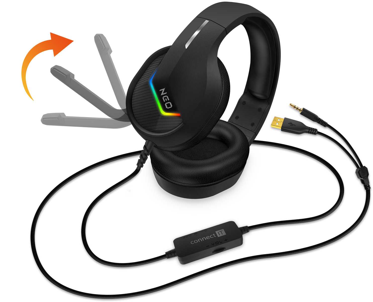 Profesionální gamingová sluchátka se sklápěcím mikrofonem NEO s podsvětlením pro hráče počítačových her