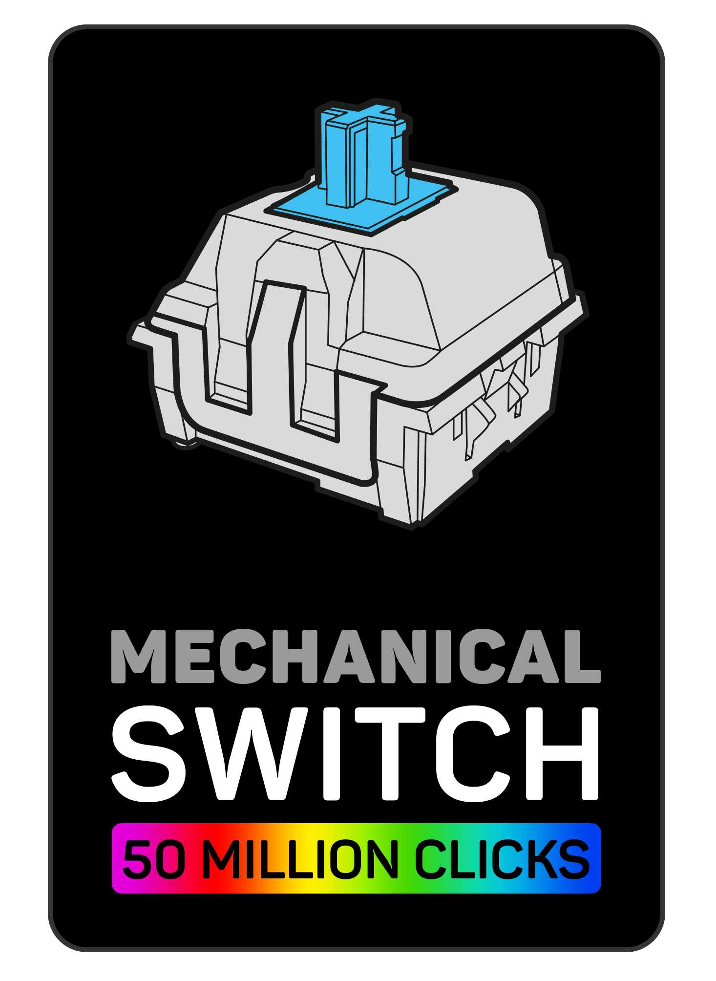 Profesionální mechanická klávesnice NEO+ series pro hráče počítačových her v českém a slovenském layoutu s celkem 22 módy barevného rainbow podsvícení a pětistupňovou regulací intenzity podsvícení. K dispozici je 12 multimediálních kláves.