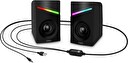 Reproduktory jsou vybaveny RGB Rainbow podsvícením a ovládáním hlasitosti na kabelu.