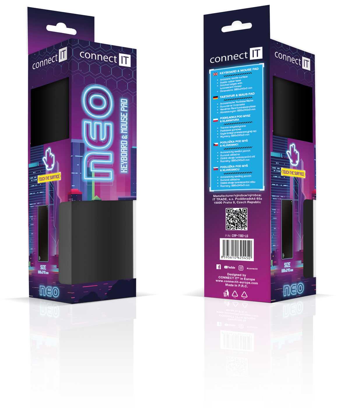 Na kvalitní a stylové podložce CONNECT IT NEO se projeví pozitivní vlastnosti vaší myši. Moderní materiál, ze kterého je podložka vyrobena, poskytuje myši dobře snímatelný podklad i pro nejjemnější laserové snímání. Dvouvrstvý materiál kombinující protiskluznost na spodní straně a ideální vlastnosti pro myši na vrchní straně se výraznou měrou zaslouží o ideální poměr mezi kontrolou nad myší a skluzem.