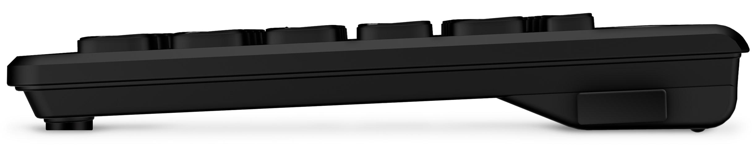 Úložný prostor ve boční části klávesnice pro mini USB přijímač ideální při transportu i cestování