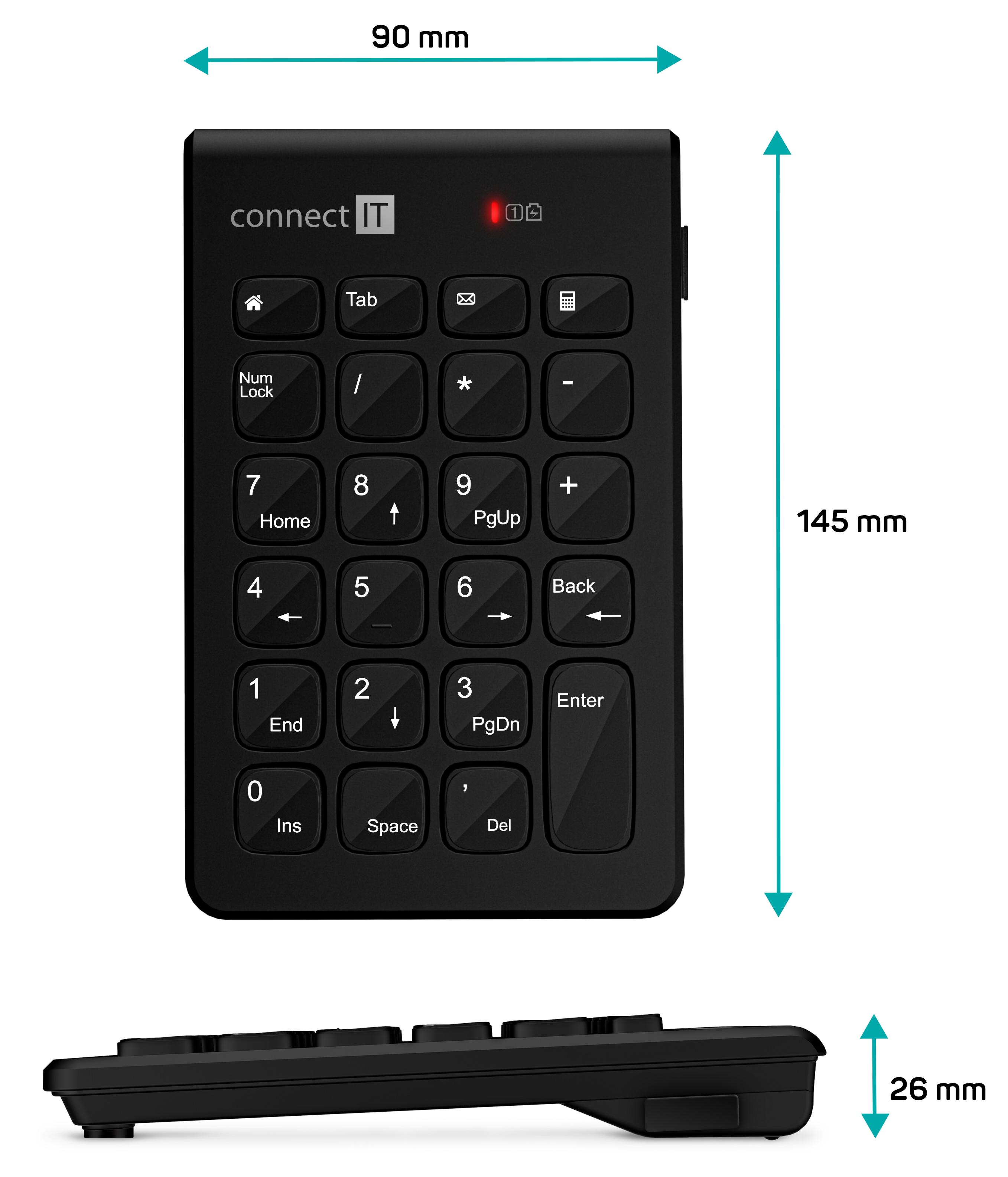 Klávesnice slouží jako přídavná klávesnice pro výpočty. Své uplatnění najde zejména u notebooků, které nemají samostatnou numerickou část a čísla je na nich nutno zadávat dvojstiskem kláves přes Shift klávesu. Výborně poslouží i v případě, kdy potřebujete mít klávesnici na druhé straně a ovládat ji levou rukou. Stejně tak ji můžete mít díky bezdrátovému připojení rovnou na sešitu se zdrojovými daty a zadávat tak výpočty pohodlně mimo počítač nebo notebook. Ideální pro všechny, kteří pracují s účetnictvím, tabulkami, výpočtovými a finančními aplikacemi.