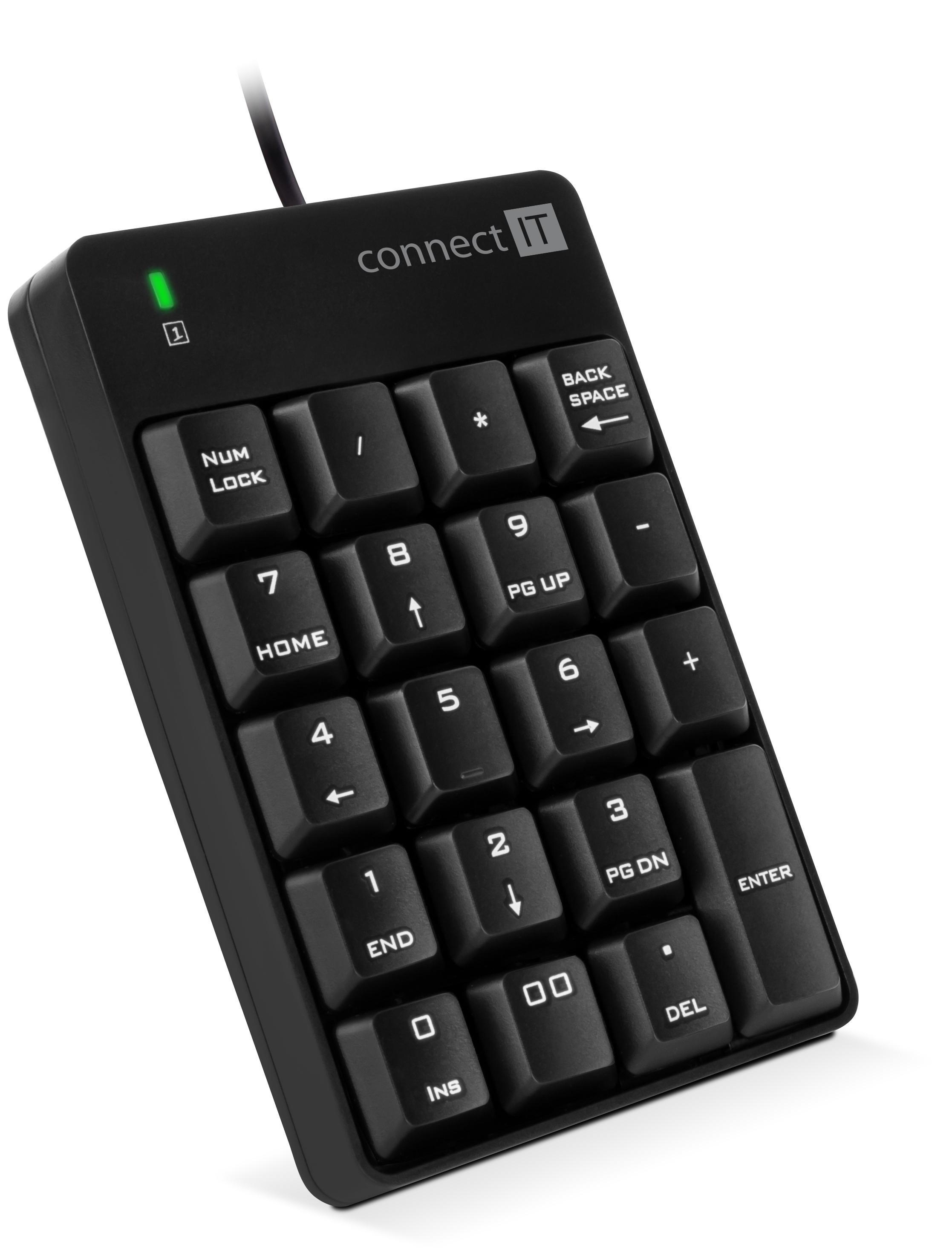 Drátová externí numerická klávesnice určena pro domácí i kancelářské profesionální použití slouží jako přídavná klávesnice pro výpočty. Své uplatnění najde zejména u notebooků, které nemají samostatnou numerickou část a čísla je na nich nutno zadávat dvojstiskem kláves přes Shift klávesu. Výborně poslouží i v případě, kdy potřebujete mít klávesnici na druhé straně a ovládat ji levou rukou. Ideální pro všechny, kteří pracují s účetnictvím, tabulkami, výpotovými a finančními aplikacemi.