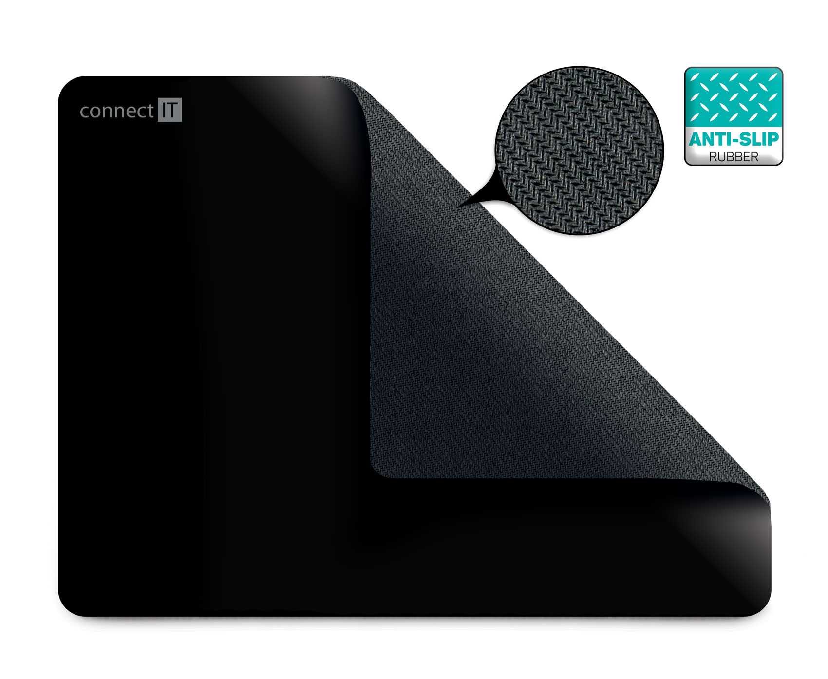 Na kvalitní podložce CONNECT IT se projeví pozitivní vlastnosti vaší myši. Moderní materiál, ze kterého je podložka vyrobena, poskytuje myši dobře snímatelný podklad i pro nejjemnější laserové snímání. Dvouvrstvý materiál kombinující protiskluznost na spodní straně a ideální vlastnosti pro myši na vrchní straně se výraznou měrou zaslouží o ideální poměr mezi kontrolou nad myší a skluzem. Velkou výhodou je pogumovaná protiskluzová spodní strana a antistatický povrch, po kterém bez problému bude jezdit každá myš. Materiál byl navržen tak, aby odpuzoval vodu a nečistoty.